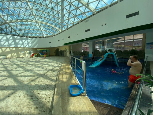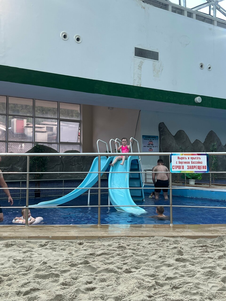 Хороший аквапарк, горки, большой бассейн. Соляная пещера платная, сауна так себе...