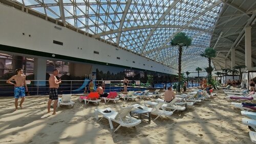 Аквапарк понравился. Сначала показался небольшим, но оказалось все продумано. Посетили два раза. Понравились горки, бассейн, сауна. Фудкорт. Для детей анимация проходит, победителям выдают призы. Ощущение как будто посетил морской пляж, так как под ногами мелкий, чистый, тёплый песок!!! Рекомендую!